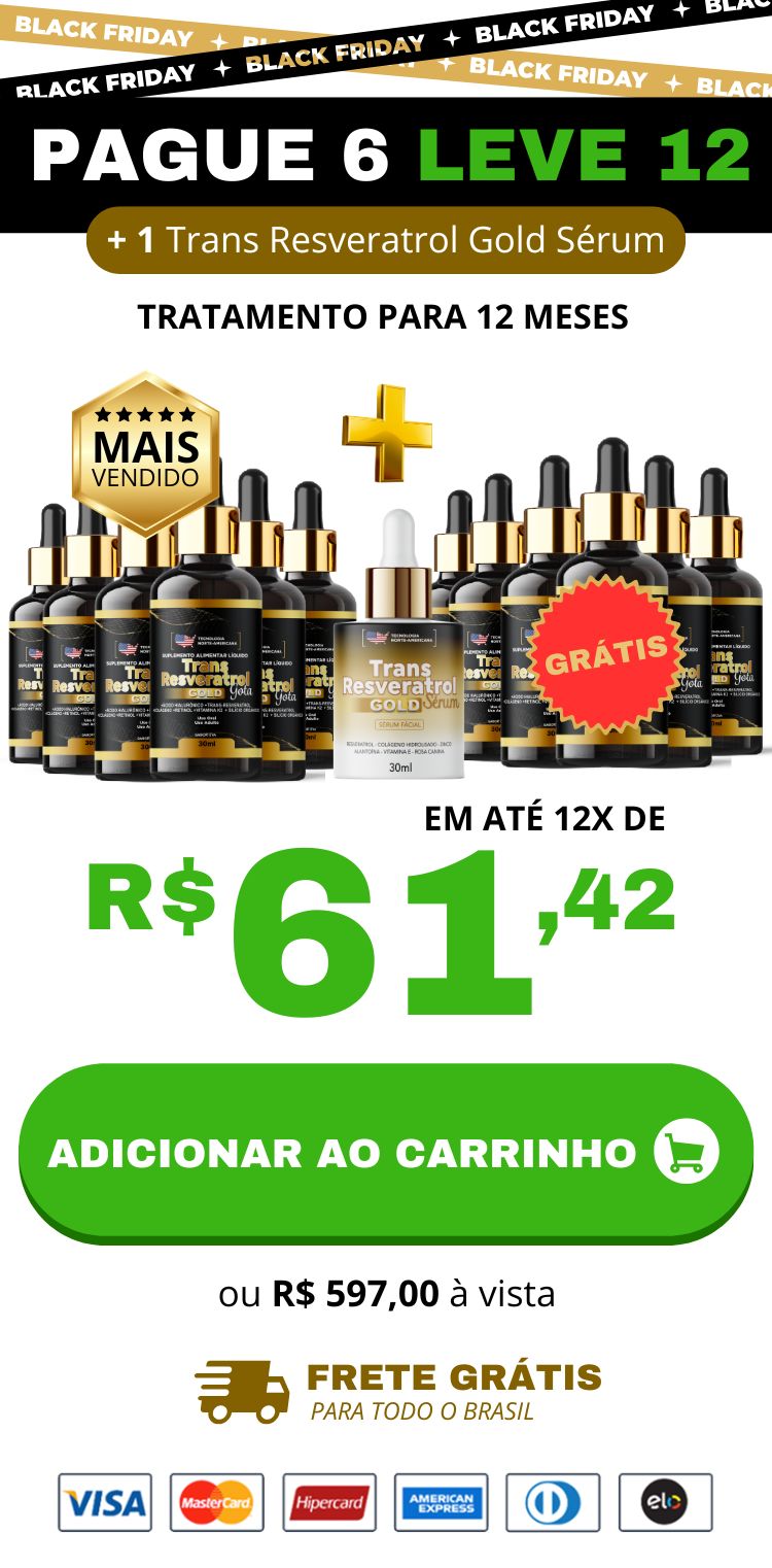 Basta escolher o kit que mais combina com você. Trans resveratrol Americano pode ser pago a vista, através de boleto bancário, ou através de cartão de crédito parcelado em até 12x.